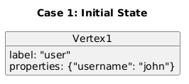 @startuml title Case 1: Initial State object Vertex1 { label: "user" properties: {"username": "john"} } @enduml