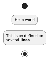 @startuml skinparam ArrowHeadColor none start :Hello world; :This is on defined on several **lines**; stop @enduml
