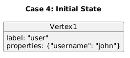 @startuml title Case 4: Initial State object Vertex1 { label: "user" properties: {"username": "john"} } @enduml