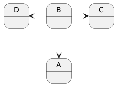 @startuml state A state B A <-down- B B -ri-> C D <-l- B @enduml