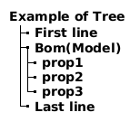 @startuml title Example of Tree |_ First line |_ **Bom(Model)** |_ prop1 |_ prop2 |_ prop3 |_ Last line end title @enduml