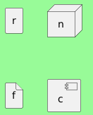 @startuml <style> document { BackgroundColor palegreen 'Margin 10 } </style> rectangle r node n file f [c] @enduml