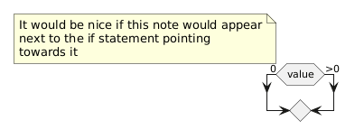 @startuml if (value) then (0) note It would be nice if this note would appear next to the if statement pointing towards it end note else (>0) endif @enduml