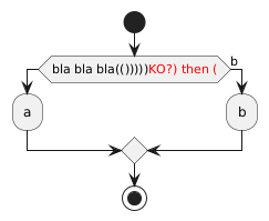 @startuml skinparam Backgroundcolor transparent start if (bla bla bla(()))))<color:red>KO?) then () :a; else (b) :b; endif stop @enduml