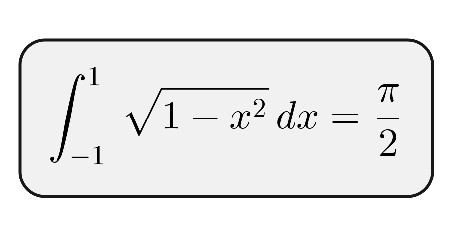 @startmindmap scale 4 skinparam Backgroundcolor transparent * <math>int_-1^1 sqrt(1-x^2)dx = pi/2</math> @endmindmap