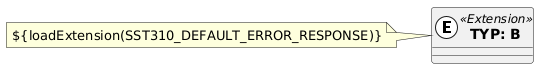 @startuml !define Extension(id, name, type = "Extension") class "<b>TYP: name</b>" as id << (E,White) type >> Extension(A, B) note left ${loadExtension(SST310_DEFAULT_ERROR_RESPONSE)} end note @enduml