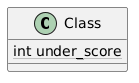 @startuml skinparam defaultFontName Noto Mono class Class { {static} <u:silver>int under</u>_<u:silver>score</u> } @enduml