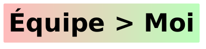 @startuml ' pick a font in the docker's system skinparam defaultfontname xkcd script skinparam rectangleBorderColor transparent hide empty members hide circle skinparam shadowing false rectangle "<size:50>**Équipe > Moi**</size>" #ffbbbb|bbffbb @enduml