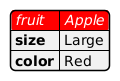 @startyaml <style> yamlDiagram { highlight { BackGroundColor red FontColor white FontStyle italic } } </style> #highlight "fruit" fruit: Apple size: Large color: Red @endyaml