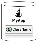 @startuml !define SPRITESURL https://raw.githubusercontent.com/rabelenda/cicon-plantuml-sprites/v1.0/sprites !includeurl SPRITESURL/java.puml database MyApp <<$java>> { class ClassName } @enduml