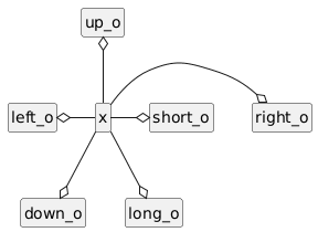 @startuml hide empty methods hide empty attributes hide circle skinparam classAttributeIconSize 0 x -up-o up_o x -down-o down_o x -left-o left_o x -right-o right_o x --o long_o x -o short_o @enduml