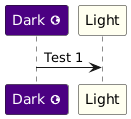 @startuml skinparam ParticipantFontColor automatic participant "Dark <&globe>" as dark #indigo participant "Light" as light #ivory ' The addition of an icon to the text displayed in the above participants causes ' a crash dark -> light: Test 1 @enduml