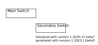 @startwire !$SwitchWidth=100 *Main_Switch [100*30] move ($SwitchWidth, 0) *Secondary_Switch [$SwitchWidth*30] print("Designed with version 1.2020.27 beta7\ngenerated with version %version()") @endwire