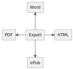 @startuml skinparam BackgroundColor transparent rectangle Export rectangle PDF { } rectangle HTML { } rectangle ePub { } rectangle Word { } Export -left-> PDF Export -right-> HTML Export -down-> ePub Export -up-> Word @enduml