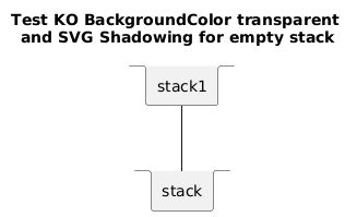 @startuml skinparam BackgroundColor transparent title Test **KO** BackgroundColor **transparent**\n and **SVG** Shadowing for empty stack stack stack1 stack stack { } stack1--stack @enduml