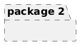 @startuml skinparam shadowing false skinparam package { BorderStyle dashed } ' uncommenting the following line removes BorderStyle for all packages 'package "package 1" as p1 package "package 2" as p2 { } @enduml