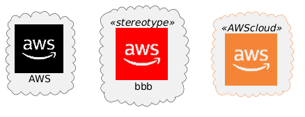 @startuml !define AWSPUML https://raw.githubusercontent.com/milo-minderbinder/AWS-PlantUML/release/18-2-22/dist !includeurl AWSPUML/common.puml !includeurl AWSPUML/General/AWScloud/AWScloud.puml cloud "AWS" as aws <<$AWScloud>> { } AWSCLOUD("awsColor", "bbb", "cloud", red, stereotype) AWSCLOUD("awsColor2") @enduml