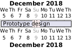 @startgantt Project starts the 5th of december 2018 saturday are closed sunday are closed [Prototype design] lasts 8 days '[Prototype design] works on 2018/12/08 2018/12/08 is opened @endgantt