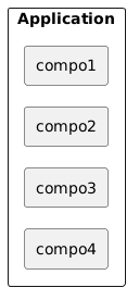 @startuml skinparam nodesep 10 skinparam ranksep 20 scale 1.0 rectangle Application { rectangle compo1 rectangle compo2 rectangle compo3 rectangle compo4 compo1 -[hidden]down-> compo2 compo2 -[hidden]down-> compo3 compo3 -[hidden]down-> compo4 } @enduml