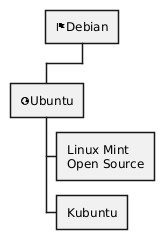 @startwbs * <&flag>Debian ** <&globe>Ubuntu *** Linux Mint\nOpen Source *** Kubuntu @endwbs