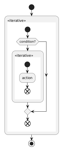 @startuml start :«iterative» {{ start if (condition?) then :«iterative» {{ start :action; end }} ; endif end }} ; stop @enduml