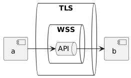 @startuml queue TLS { queue WSS { queue API } } [a] -> API API -> [b] @enduml
