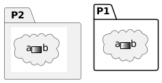 @startuml sprite $foo1 { FFFFFFFFFFFFFFF F0123456789ABCF F0123456789ABCF F0123456789ABCF F0123456789ABCF F0123456789ABCF F0123456789ABCF F0123456789ABCF F0123456789ABCF FFFFFFFFFFFFFFF } package P1 { cloud "a<$foo1>b" } package P2 [ {{ sprite $foo1 { FFFFFFFFFFFFFFF F0123456789ABCF F0123456789ABCF F0123456789ABCF F0123456789ABCF F0123456789ABCF F0123456789ABCF F0123456789ABCF F0123456789ABCF FFFFFFFFFFFFFFF } cloud "a<$foo1>b" }} ] @enduml