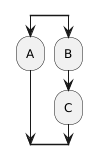 @startuml split :A; label spacer1 label spacer2 split again :B; :C; end split @enduml