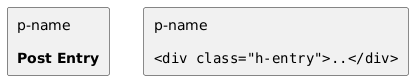 @startuml rectangle "p-name\n\n**Post Entry**" rectangle foo [ p-name ""<div class="h-entry">..</div>"" ] @enduml