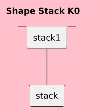 @startuml scale 2 skinparam BackgroundColor pink title Shape Stack **K0** stack stack1 stack stack { } stack1--stack @enduml