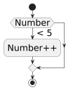 @startuml scale .5 skinparam defaultFontSize 25 start if (Number) is ( < 5 ) then :Number++; endif stop @enduml