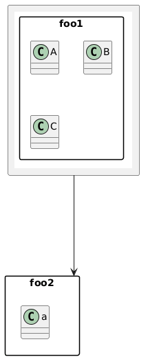 @startuml skinparam packageStyle rectangle package foo1 [ {{ package foo1 { class A class B class C } }} ] package foo2 { class a } foo1 --down--> foo2 @enduml