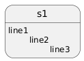 @startuml skinparam tabSize 2 state s1 s1 : line1 s1 : \tline2 s1 : \t\tline3 @enduml