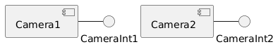 @startuml skinparam componentStyle uml2 component Camera1 component Camera2 interface CameraInt1 interface CameraInt2 Camera1 - CameraInt1 Camera2 - CameraInt2 @enduml