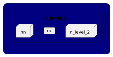 @startuml skinparam Backgroundcolor transparent #navy: {{ skinparam Backgroundcolor transparent node n_level_1 { node nn card nc node n_level_2 { } } }} ; @enduml