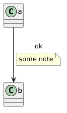 @startuml class a class b a --> b : ok note on link : some note @enduml
