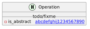@startuml class Operation << (H,#E6FFE6) >> { __todo/fixme__ -is_abstract [[ abcdefghij1234567890 { abcdefghij1234567890 abcdefghij1234567890 abcdefghij1234567890 abcdefghij1234567890 abcdefghij1234567890 abcdefghij1234567890 abcdefghij1234567890 abcdefghij1234567890 tooltip } ]] } @enduml