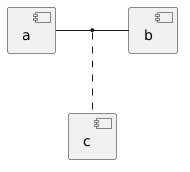 @startuml component a as a { } component b as b { } component c as c { } a - b (a, b) .. c @enduml