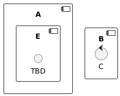 @startuml component "A" as A { component "E" as E { !define F H circle "TBD" as F !define G H circle "TBD" as G } } component "B" as B { control "C" as C } @enduml