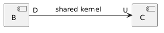 @startuml component B component C B "D" -right-> "U" C : \tshared kernel\t\t @enduml