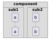 @startuml !pragma teoz true box "component" box "sub1" participant a endbox box "sub2" participant b endbox end box @enduml