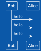 @startuml !theme amiga Bob -> Alice : hello Bob -> Alice : hello Bob -> Alice : hello @enduml