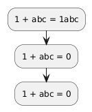 @startuml !$a=1 + abc :1 + abc = $a; :1 + abc = %eval("1 + abc"); !$b="1 + abc" :$b = %eval($b); @enduml