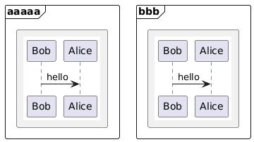@startuml Frame "aaaaa" { rectangle "<img:http://www.plantuml.com/plantuml/png/SyfFKj2rKt3CoKnELR1Io4ZDoSa70000>" as aa } Frame "bbb" { rectangle "<img:http://www.plantuml.com/plantuml/png/SyfFKj2rKt3CoKnELR1Io4ZDoSa70000>" as bb } @enduml