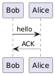 @startuml Bob -> Alice : hello Bob <-- Alice: ACK @enduml