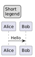 @startuml Alice -> Bob : Hello legend top left Short legend endlegend @enduml