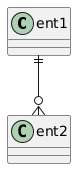 @startuml <style> wbsDiagram { RoundCorner 3 } </style> ent1 ||--o{ ent2 @enduml