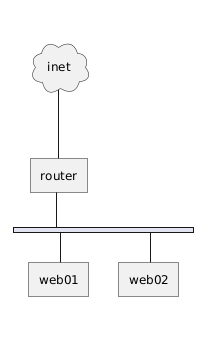 @startuml nwdiag { inet [shape = cloud]; inet -- router; network { router; web01; web02; } } @enduml