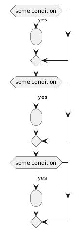 @startuml if(some condition) then (yes) :; endif if(some condition) then (\n<font:monospaced>yes</font>\n\n) :; endif if(some condition) then (\n<font:serif>yes</font>\n\n) :; endif @enduml