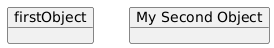 @startuml object firstObject object "My Second Object" as o2 @enduml